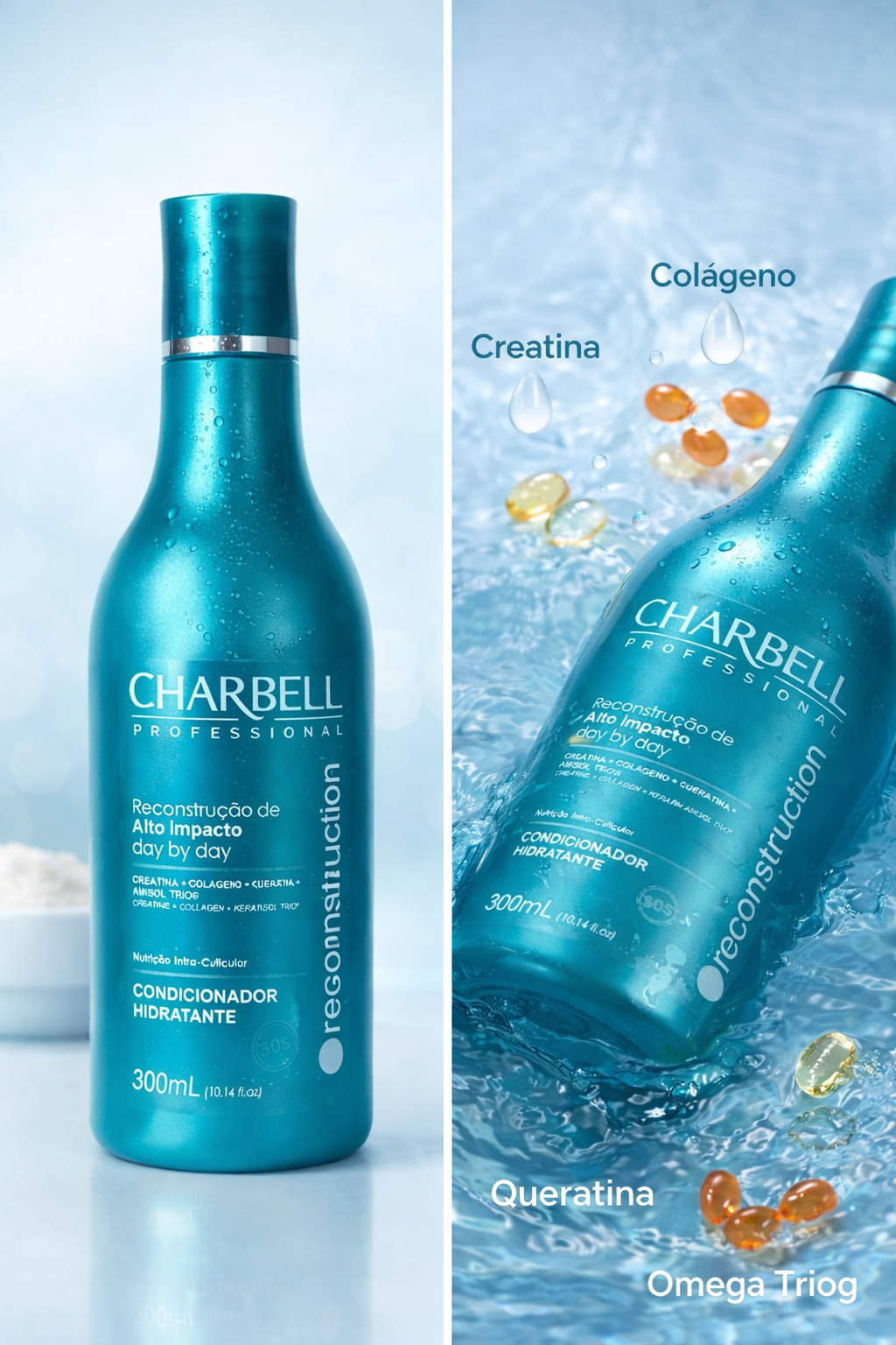 Composição: Aqua, Disodium EDTA, BHT, Lactic Acid, Polyquaternium-7, Methylchloroisothiazolinone, Methylisothiazolinone, Citric Acid, Cetearyl Alcohol, Behentrimonium Chloride, Cyclopentasiloxane, Dimethicone, Parfum, Creatine, Lecithin, Butyl Stearate, Sesamum Indicum (Sesame) Seed Oil, Hydrolyzed Collagen, Oleoyl Sarcosine, Lanolin Alcohol, Triethanolamine, Phospholipids, Glycine Soja (Soybean) Oil, GLYCOLIPIDS, Glycine Soja (Soybean) Sterols, PEG-90M, Phenoxyethanol, Imidazolidinyl Urea, Cetrimonium Chloride, Alcohol, Sodium chloride, Sodium acetate, Polyquaternium-67, Cetrimonium chloride, Alcohol, Aminopropyl phenyl trimethicone, Hydrolized Keratin, Potassium Sorbate.